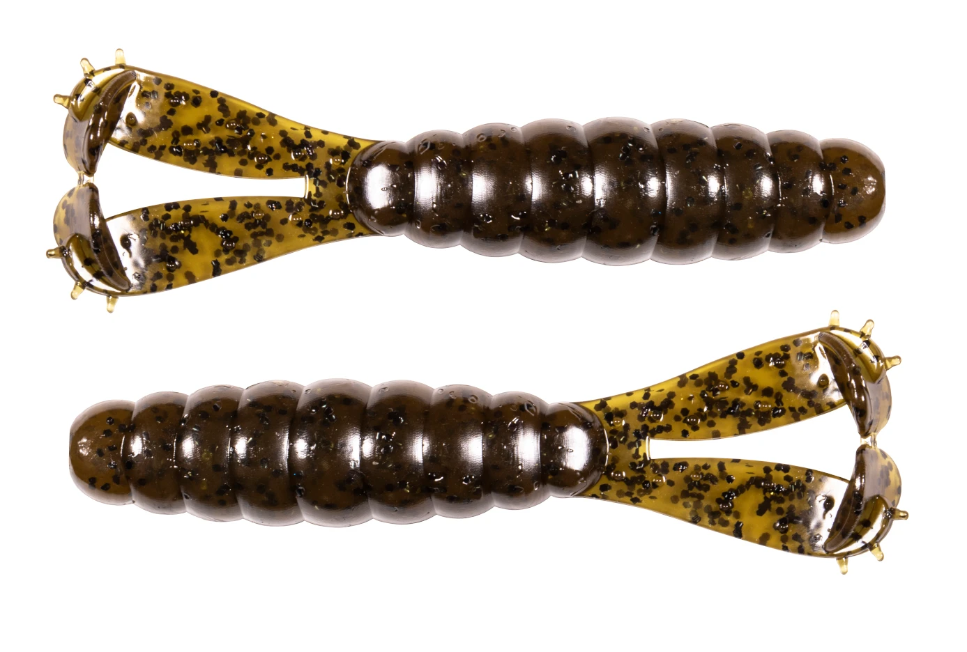 Specifically, the GOAT’s segmented, slightly flattened torso transitions into two thin-skinned kicking legs, each with a pulsating, deeply cupped paddle at the end. Soft and buoyant, the bait’s 10X Tough ElaZtech construction means it’s also durable enough to survive multiple catches before it needs to be replaced.