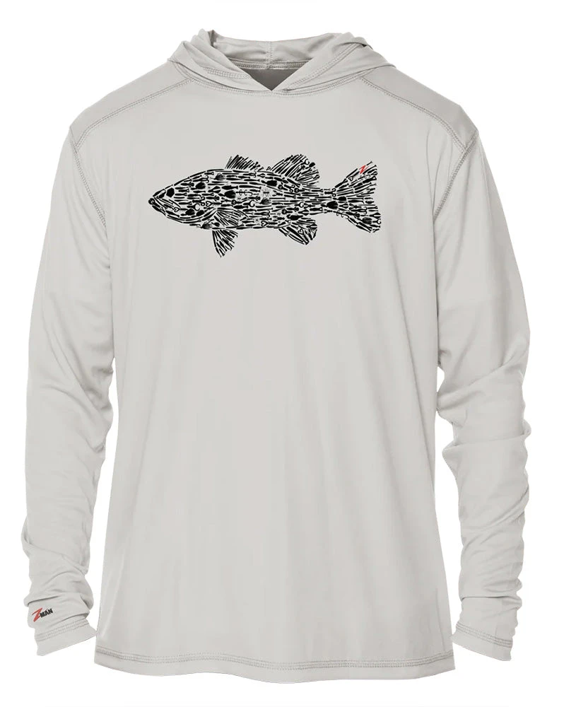 The Z-Man Bass Baitz Tech Hoodiez is a lightweight, moisture-wicking solar hoodie that keeps you cool and protected under the sun. Made from quick-dry microfiber, it offers comfort and breathability, while UPF 50+ sun protection and a broad hood shield you from harmful rays. Its fully sublimated bass baits chest design adds style, and it’s available in light gray with multiple sizes for a comfortable fit.