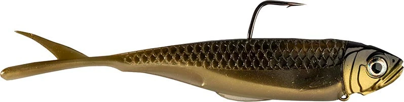 - Equipped with a weighted jighead, stamped for easy reference, that matches the shad body, and a deep profile and air cavity that enhance sonar reflectivity.
