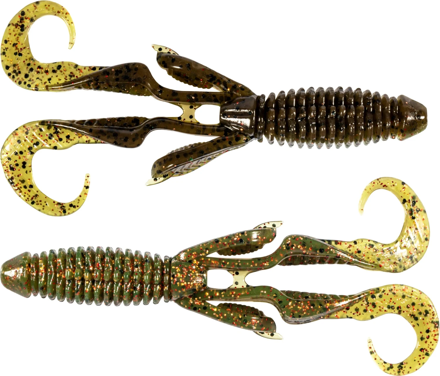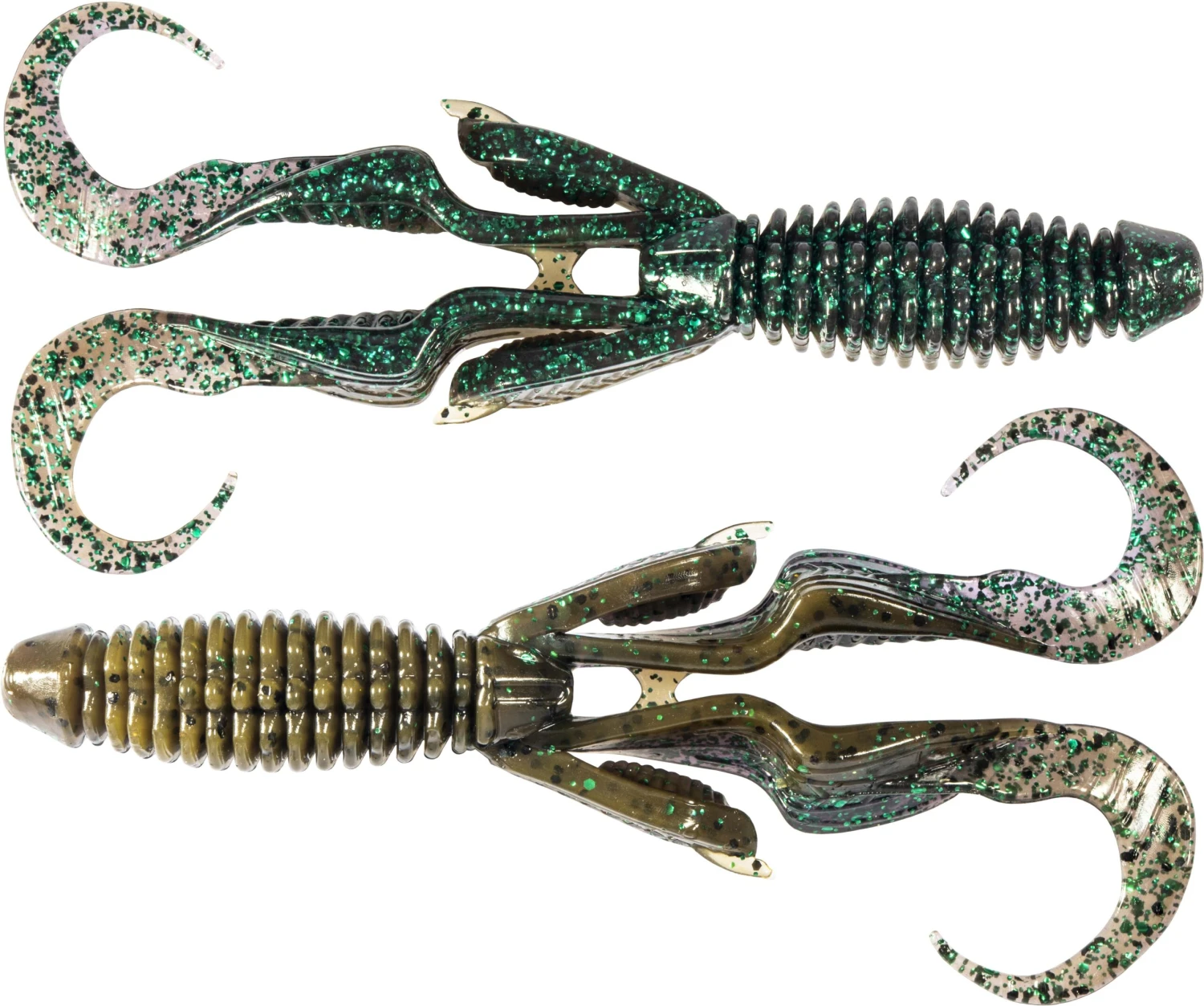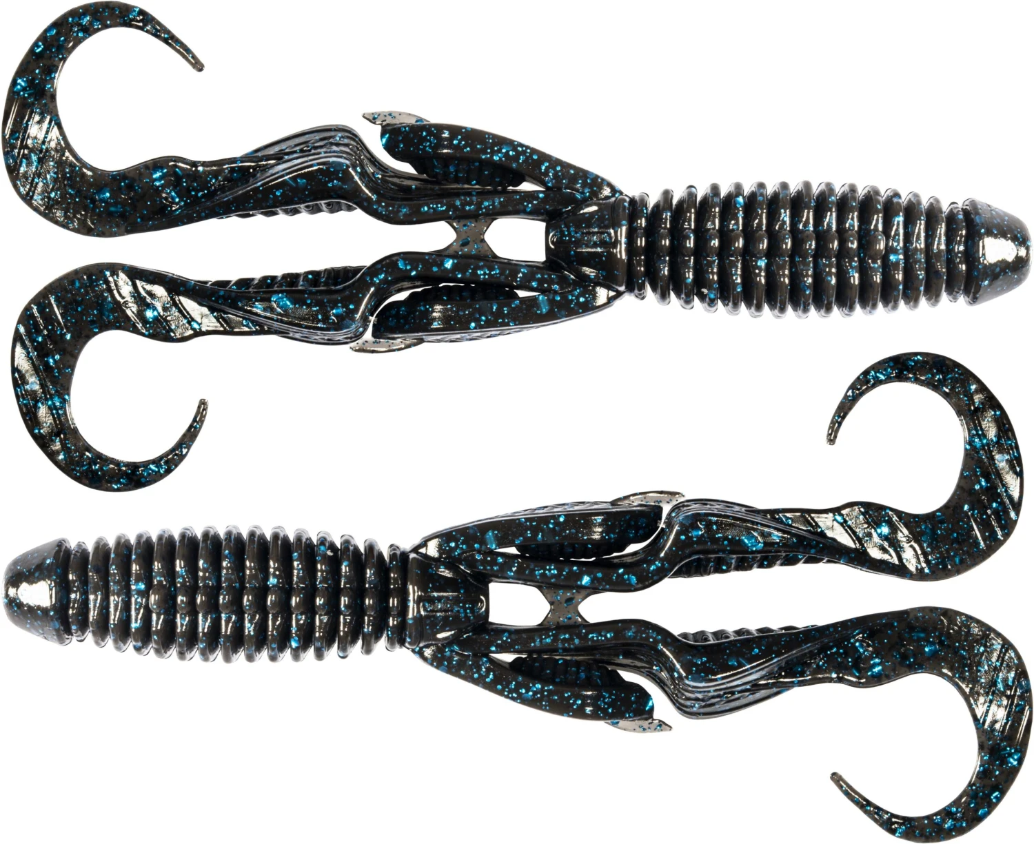 - Engineered with twin curly tails and appendages for subtle action and vibration under the water.