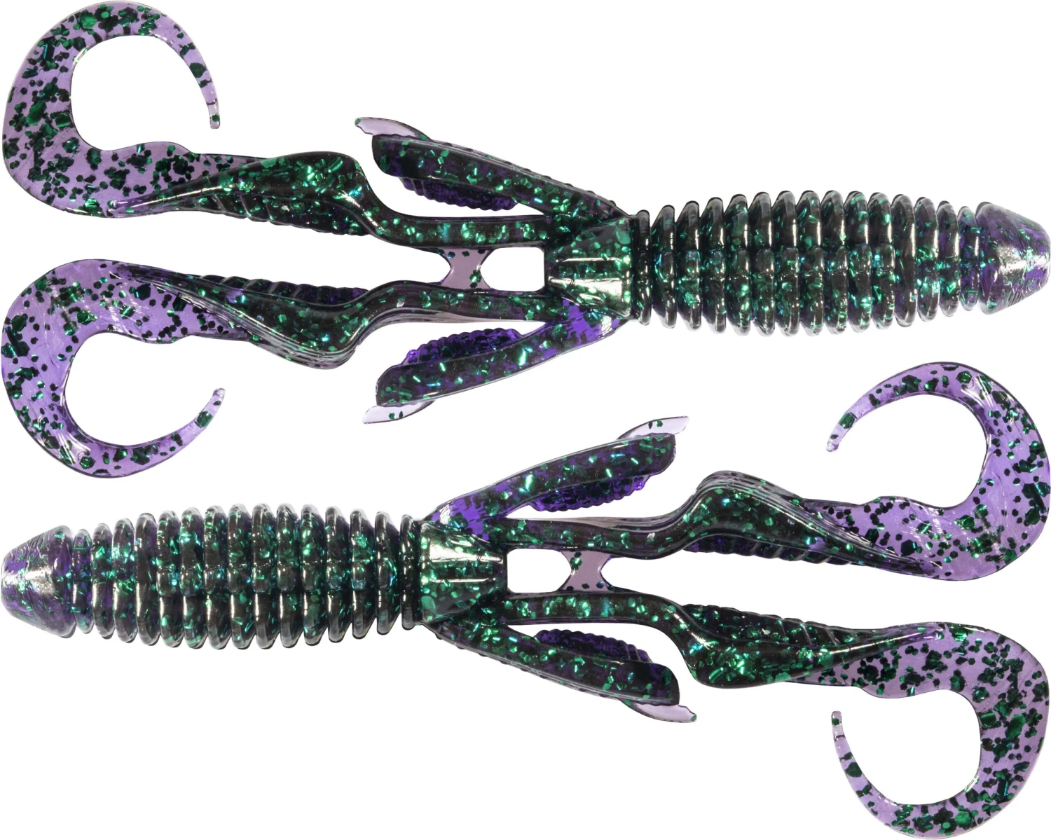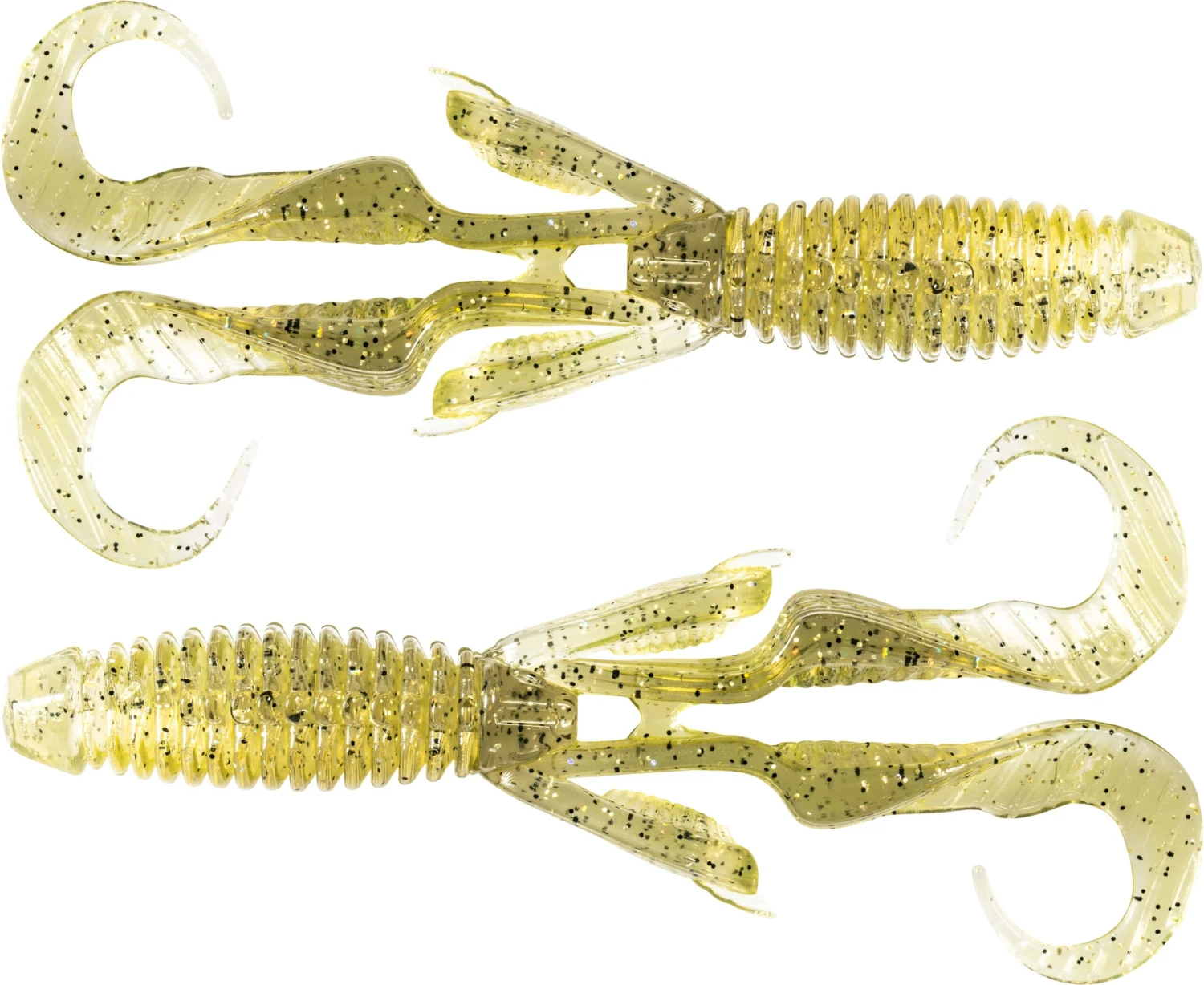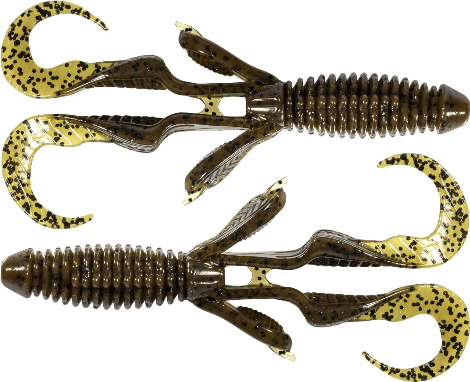 - Engineered with twin curly tails and appendages for subtle action and vibration under the water.