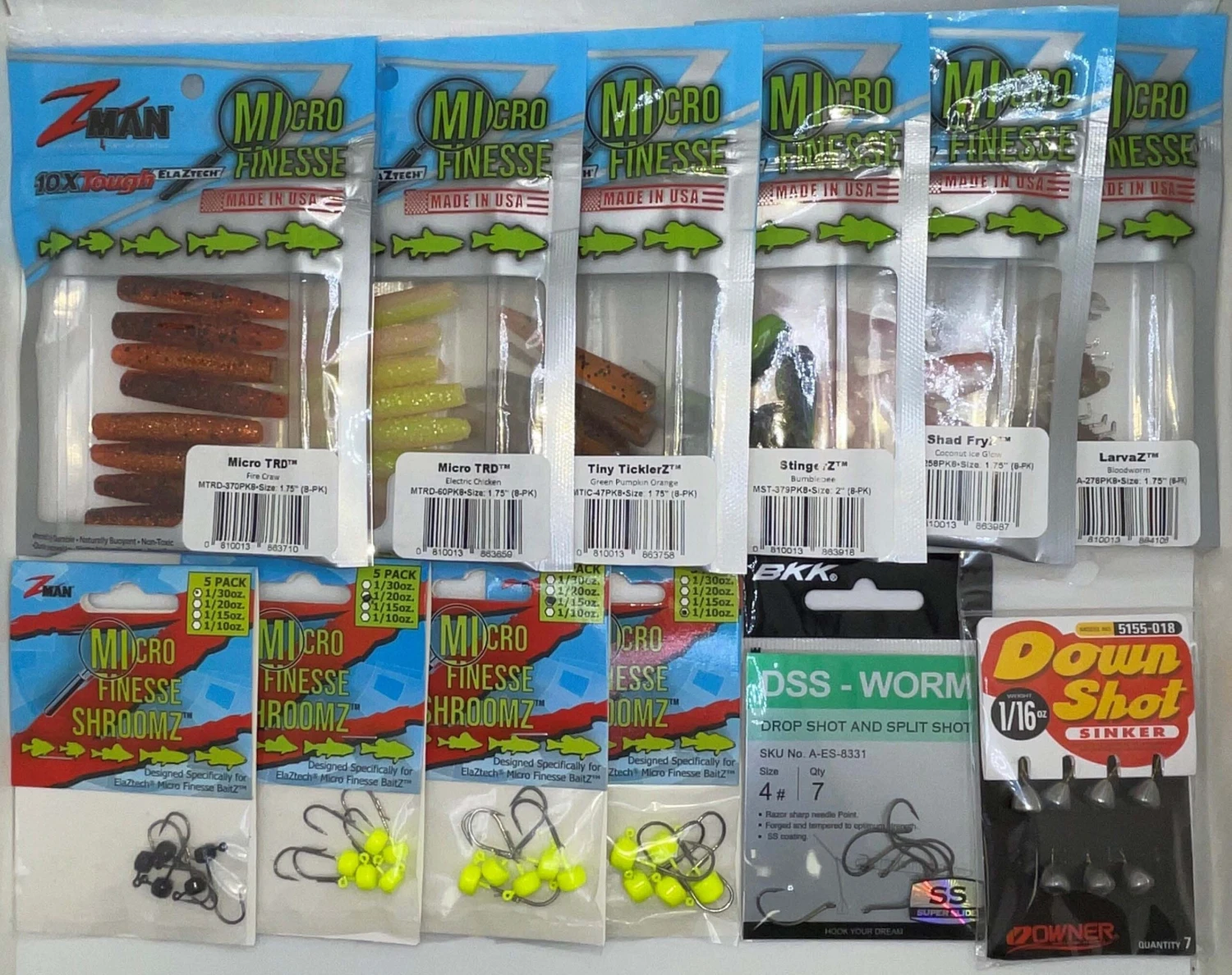 - Our Exclusive Discount Tackle Z-Man Micro Finesse Kit is a comprehensive 81-piece collection that ensures a successful fishing trip with high-quality baits and tailored color assortments!